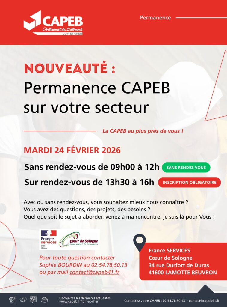 La CAPEB de Loir-et-Cher assurera des permanences ponctuelles. La...